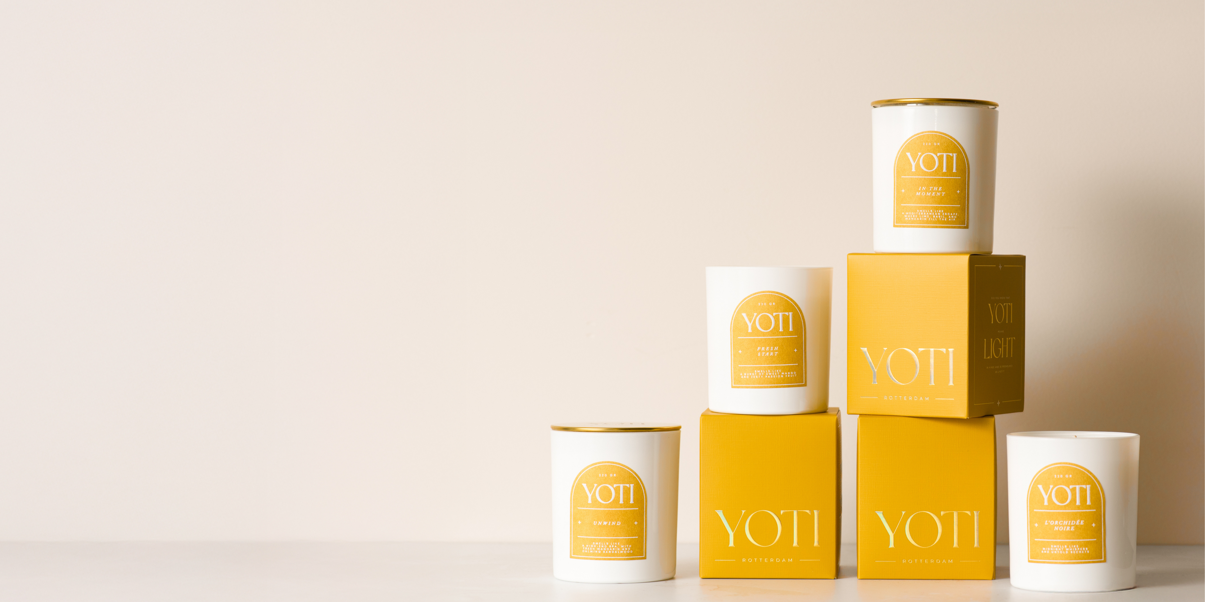 Each Yoti candle is carefully handpoured in small batches by our team in Rotterdam, the Netherlands. This ensures consistent quality, a clean burn, and long-lasting scent throw.
